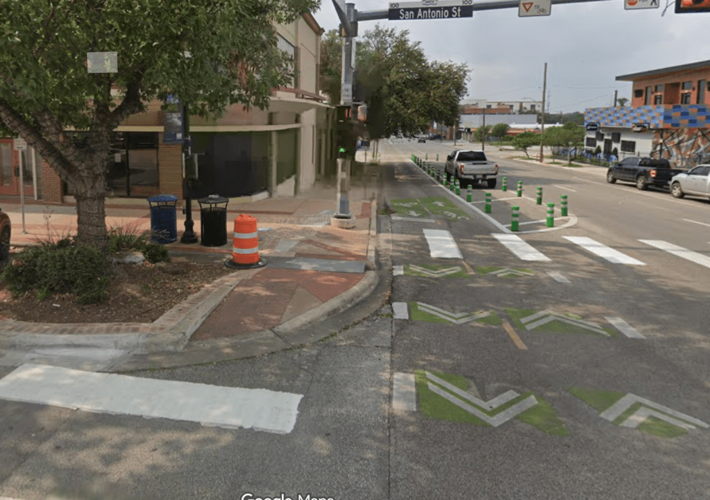 In 2019, when the City of San Marcos was working to propose a two-way bike boulevard connecting the Texas State University campus to downtown San Marcos and beyond, MoveSM worked to provide active and vocal support to city staff to help make the effort a success. MoveSM also conducted a thorough plan review and provided comments for ways to improve the plan, including the inclusion of the city’s first buffered pedestrian lane where there were gaps in the sidewalk network. This bike lane has become a defining characteristic of downtown and is an important network link on what would be an otherwise bike-unfriendly street.