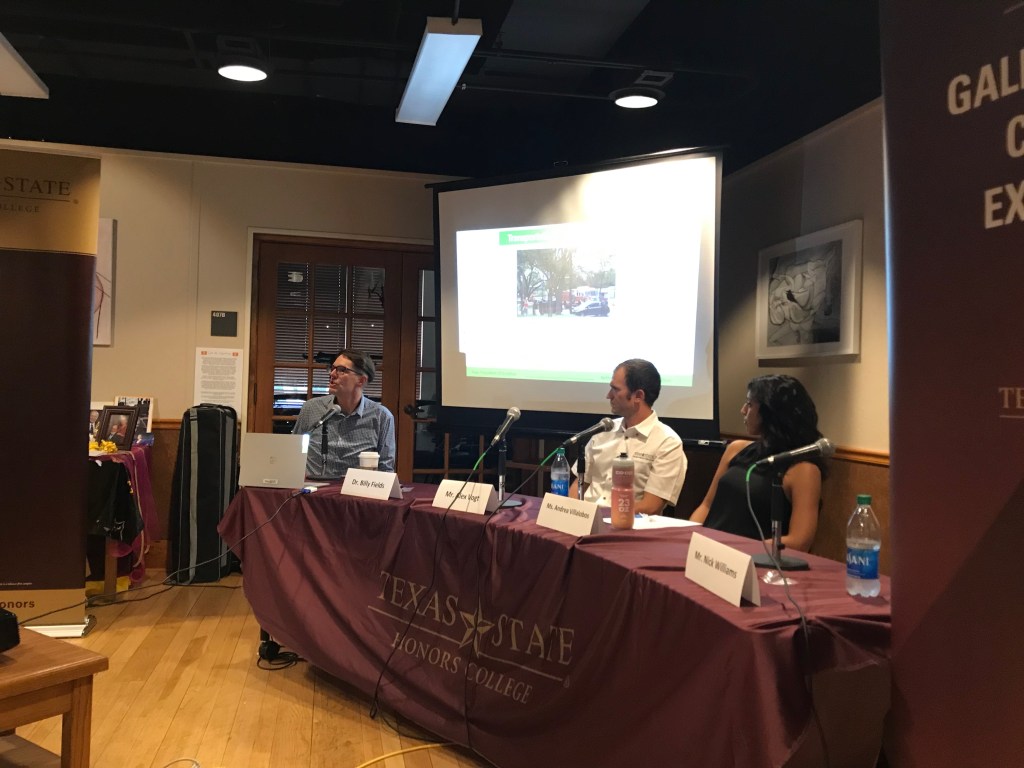 “Truth In Transit” – Panel Discussion and Podcast Recording; Co-Sponsored by the Texas State University Honors College, and Common Experience (2019)